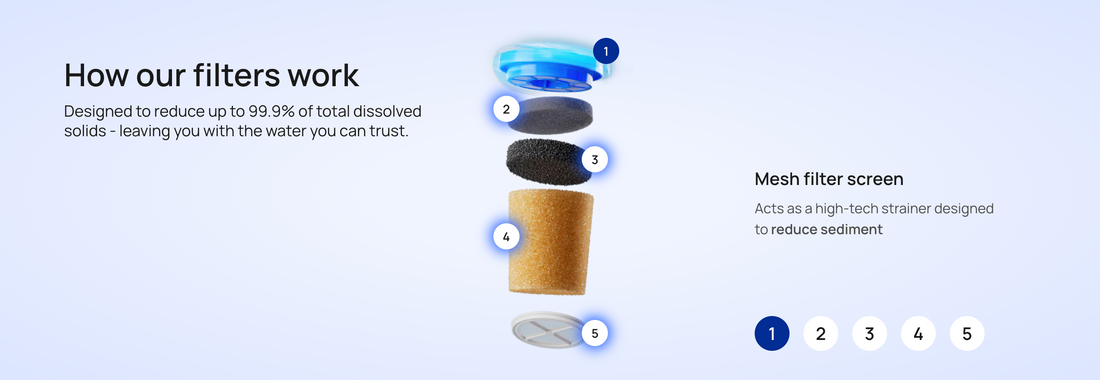 Each jug or dispenser comes with one filter - how often this needs replacing depends on the TDS levels in your water. Most UK tap water has a TDS level between 25-200 PPM, meaning each filter can produce approximately 95-150+ litres of pure water before needing to be replaced. Since TDS levels vary based on location, your filter might last longer OR need replacing sooner. Visit our 'replacement filters' product page to view a map of TDS levels across the UK.