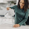 The 2.8L jug is our largest handheld filtration jug, which can still fit on your fridge shelf. Comes with a TDS meter and 1x new 5-stage filter